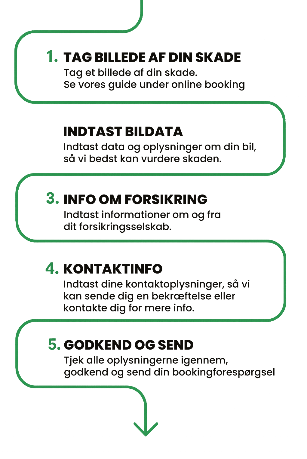 Det tager kun få minutter at udfylde skadeformularen og sende den ind. Vi svarer dig så hurtigt som muligt – inden for 24 timer – og bekræfter prisen. Derefter booker vi en tid til reparation.
